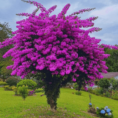 La Buganvilia, conocida también como veranera o papelillo, es una planta trepadora tropical muy popular por sus vistosas brácteas de colores intensos como fucsia, rojo, naranja, blanco o morado. Aunque parecen flores, estas brácteas rodean pequeñas flores blancas en su interior. Es resistente al sol y a la sequía, ideal para cubrir muros, pérgolas o enredaderas. Florece casi todo el año y aporta color a jardines urbanos y rurales. También tiene usos en medicina tradicional como antiinflamatorio.